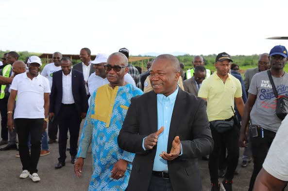 En présence du Gouverneur Robert MABOBET et des autorités locales, impulsé par le Président de la Transition Brice Clotaire Oligui Nguema , ce projet comprend trois phases :le balisage de la piste, équipement et infrastructures pour vols commerciaux, puis mise en service.