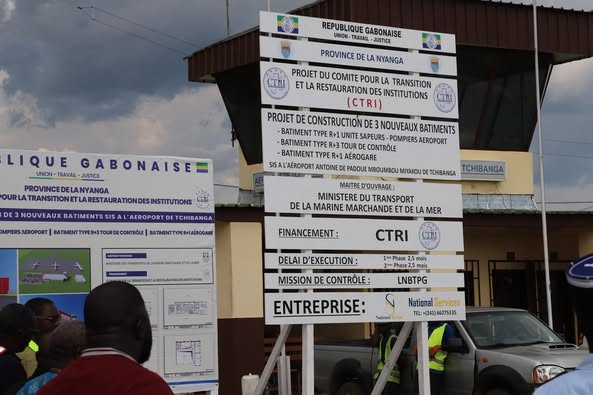 Le mardi 12 novembre 2024, en pleine campagne référendaire, le Ministre des Transports, Dieudonné Loïc NDINGA MOUDOUMA, et le Ministre de l’Agriculture, Jonathan IGNOUMBA, ont lancé officiellement les travaux de construction du nouvel aéroport de Tchibanga (province de la Nyanga).
