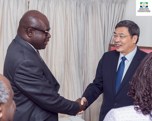 S.E.M. Michel Régis ONANGA M. NDIAYE Ministre des Affaires Étrangères Chargé de l’Intégration Sous-Régionale et des Gabonais de l’Etranger, accompagné de ses collègues Ministres de l’agriculture, celui de la formation professionnelle, ont reçu en audience le vice-gouverneur de la province du Jiangsu, en Chine ( où s’était rendu le chef de l’Etat l’année dernière), ainsi que l’ambassadeur de Chine au Gabon.