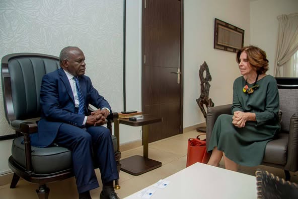 Le 28 Mai 2025, le Ministre de l’Accès Universel à l’Eau et à l’Énergie, Monsieur Philippe Tonangoye, a reçu une délégation de l’Union Européenne conduite par l’Ambassadrice Cécile Abadie.