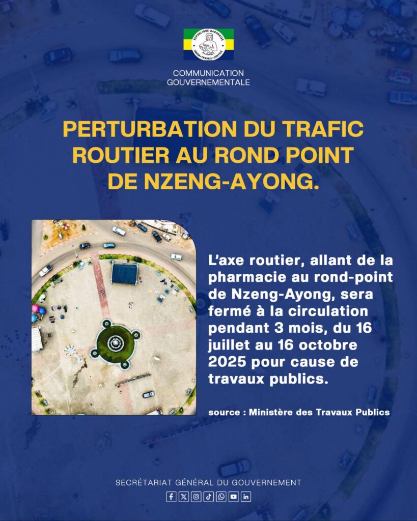 PERTURBATION DU TRAFIC ROUTIER « PHARMACIE -> ROND POINT DE NZENG-AYONG