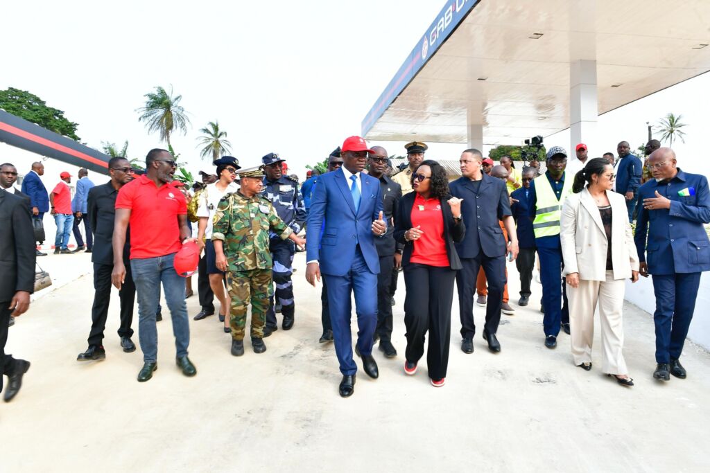 À Cocobeach, il a ouvert la première station-service GABOIL, visité un tronçon routier bitumé de 3 km et un projet de logements.