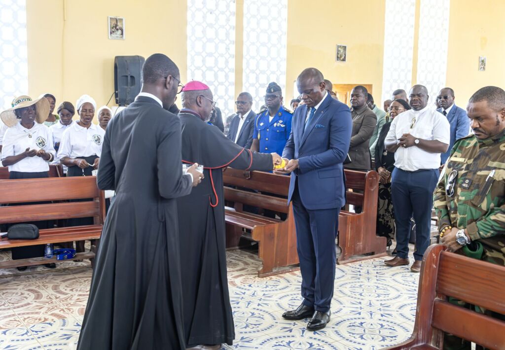 Sa visite a débuté par un office religieux à la paroisse Saint Marcel, présidé par l’Archevêque de Libreville, en prière pour la Nation et la 5ᵉ République. Il a ensuite inauguré le Complexe Évangélique de la Libération “Angom”, doté de 32 salles de classe modernisées et d’infrastructures éducatives, sportives et sanitaires, ainsi que la nouvelle Perception de Kango.
