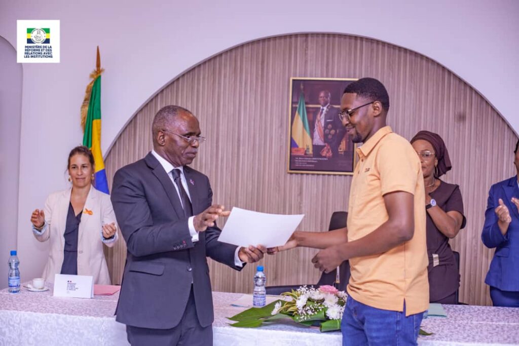 Le Ministre de la Réforme et des Relations avec les Institutions, et Ministre du Travail, du Plein Emploi et du Dialogue Social par intérim, François Ndong Obiang, a remis ce vendredi 28 novembre 2025 les certificats de fin de formation aux jeunes Gabonais bénéficiaires du programme Initiative Jeunesse Autonome (IJA), mis en œuvre par le Pôle National de Promotion de l’Emploi (PNPE).