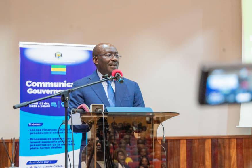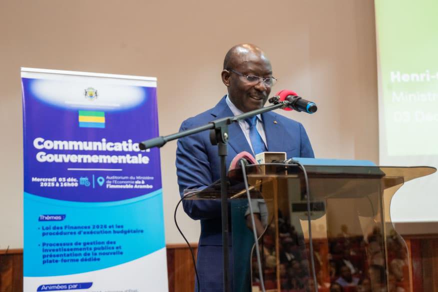 Le Vice-prรฉsident du Gouvernement, Ministre dโ€™ร‰tat, Ministre de lโ€™ร‰conomie, Henri-Claude OYIMA, accompagnรฉ de la Ministre de la Planification et de la Prospective, Louise Pierrette MVONO, et de 5 hauts cadres de lโ€™Administration (Directeurs/Commissaire) spรฉcialisรฉs en Finances Publiques et en Planification, a animรฉ une importante sรฉance de travail consacrรฉe ร  la Loi des Finances 2026, ce mercredi 3 Dรฉcembre 2025, ร  lโ€™auditorium Arambo.