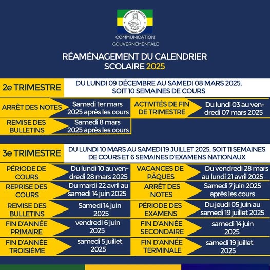 Réajustement du calendrier scolaire 2024-2025 : modification des 2e et 3e trimestres en raison de la tenue de l’élection présidentielle du 12 avril prochain.
