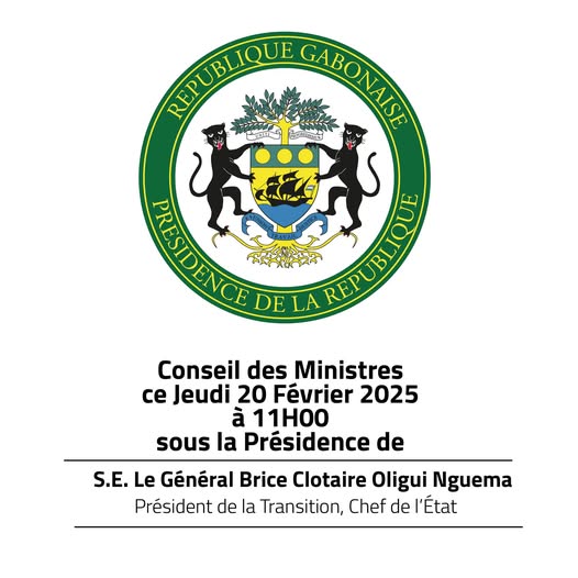 Conseil des ministres ce jeudi 20 février 2025 à 11h, présidé par le Chef de l’État, S.E. Brice Clotaire Oligui Nguema . #AnnonceCDM