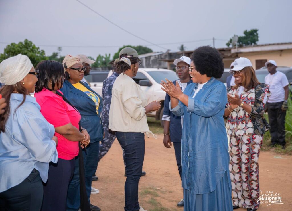 Accueillie chaleureusement par les femmes de la commune, la Ministre accompagnée de plusieurs membres du Gouvernement, a salué l’enthousiasme local. La journée s’est conclue par un dîner convivial avec Madame Sidonie Flore OUWE, marquant une rencontre empreinte de solidarité féminine.