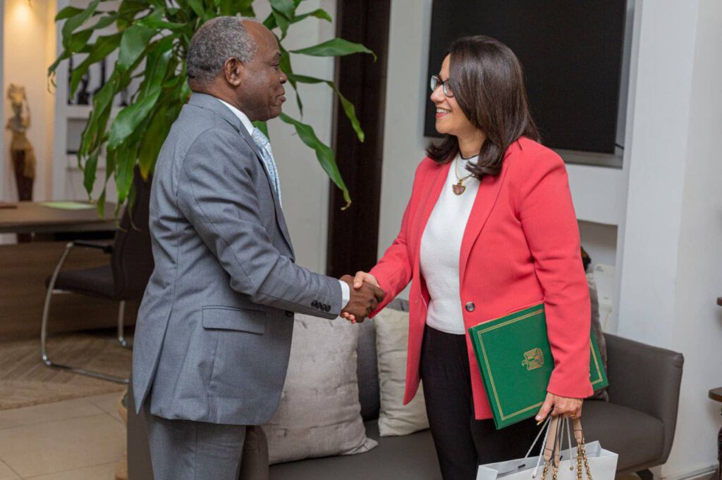 Le Ministre de l’Accès Universel à l’Eau et à l’Énergie, Monsieur Philippe TONANGOYE, a reçu en audience Son Excellence Madame Riham AMMAR, Ambassadeur de la République Arabe d’Égypte près la République Gabonaise.