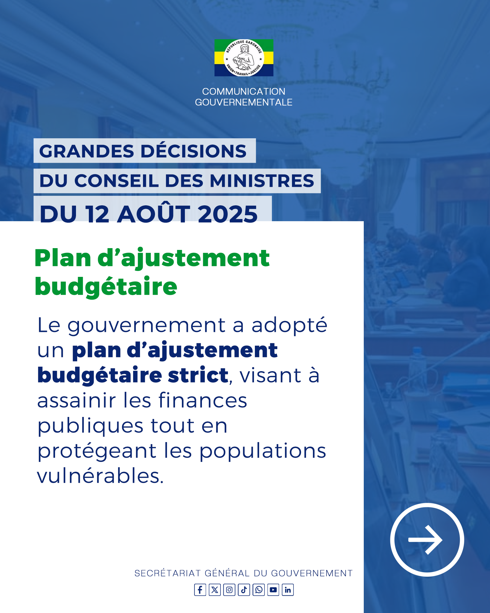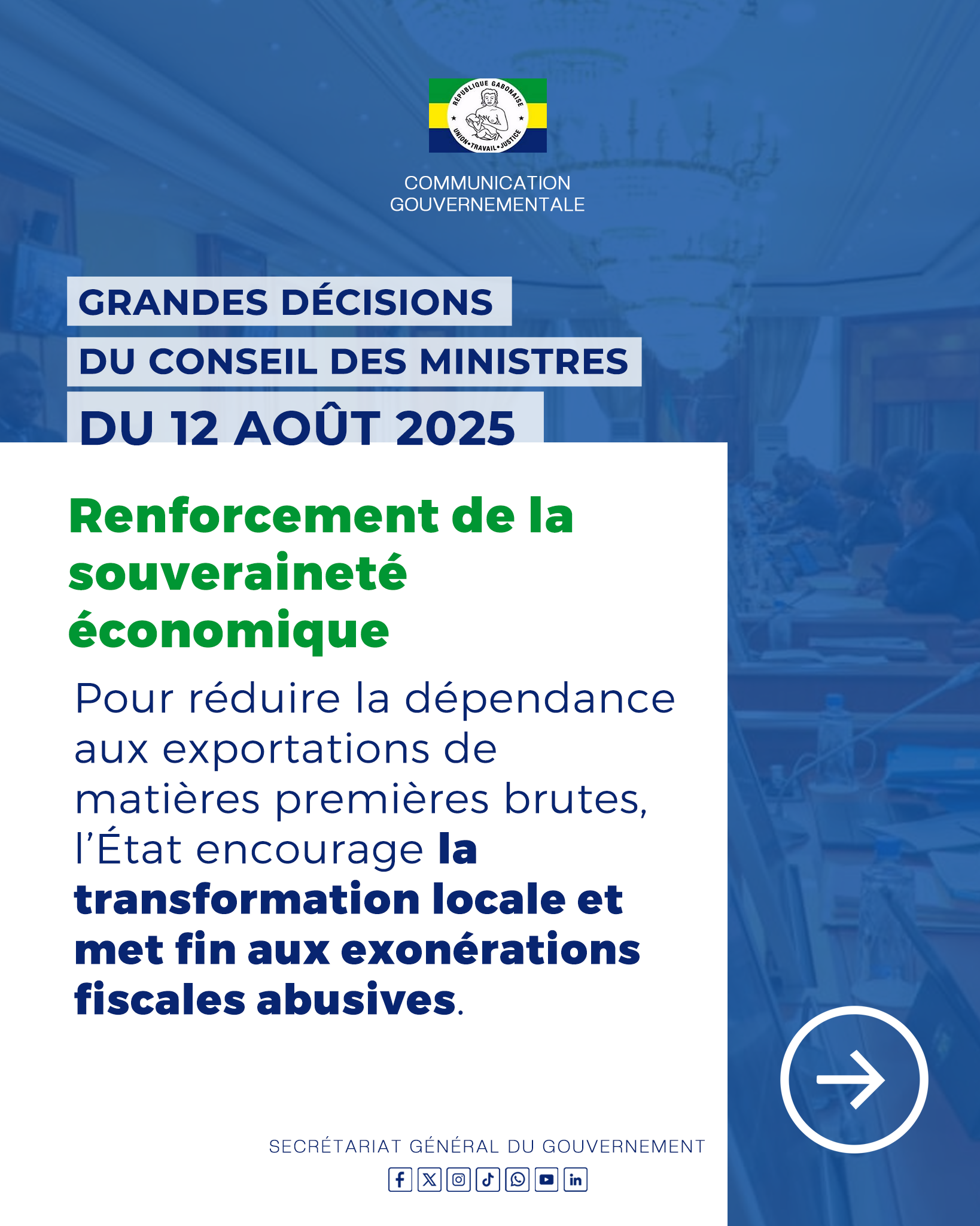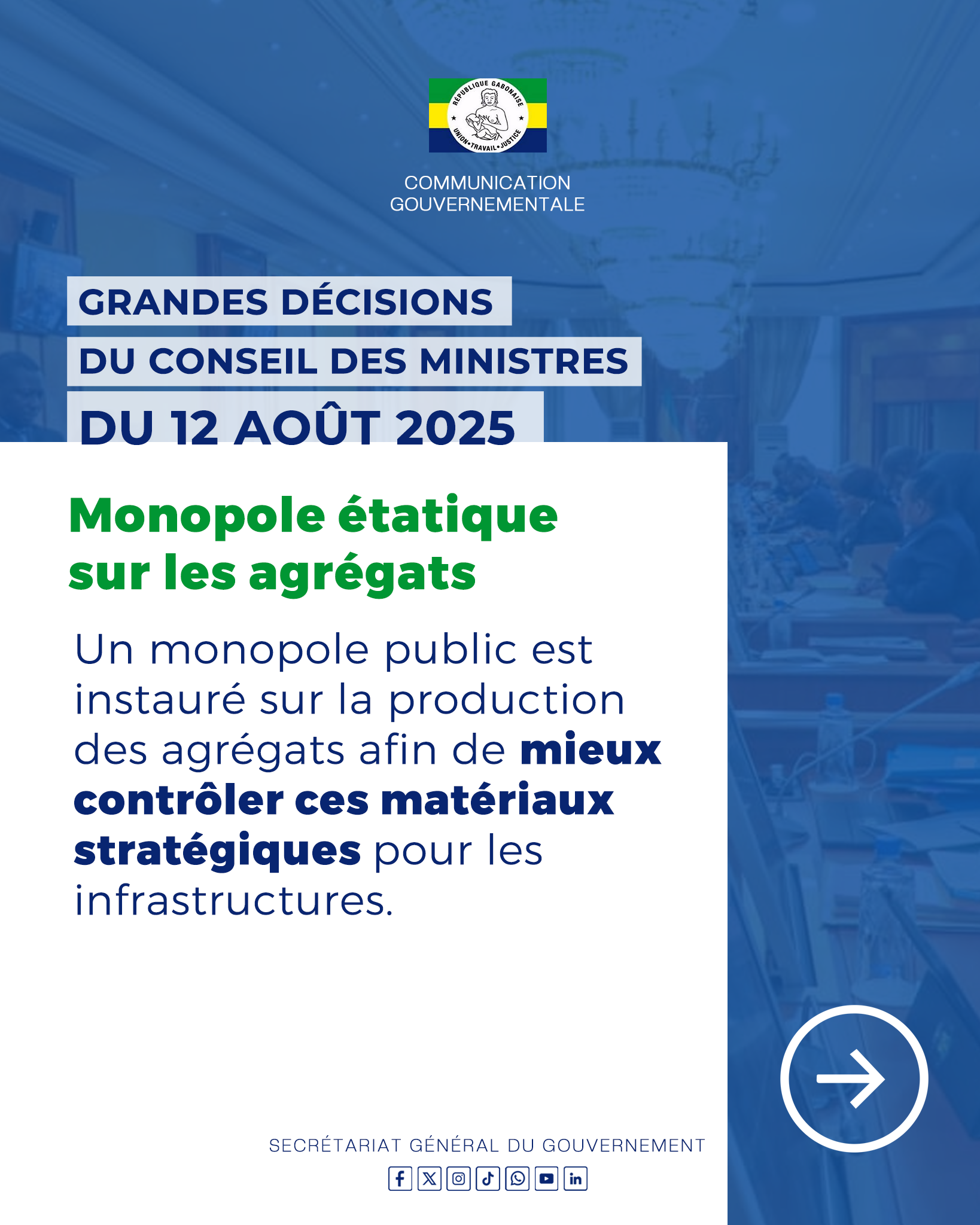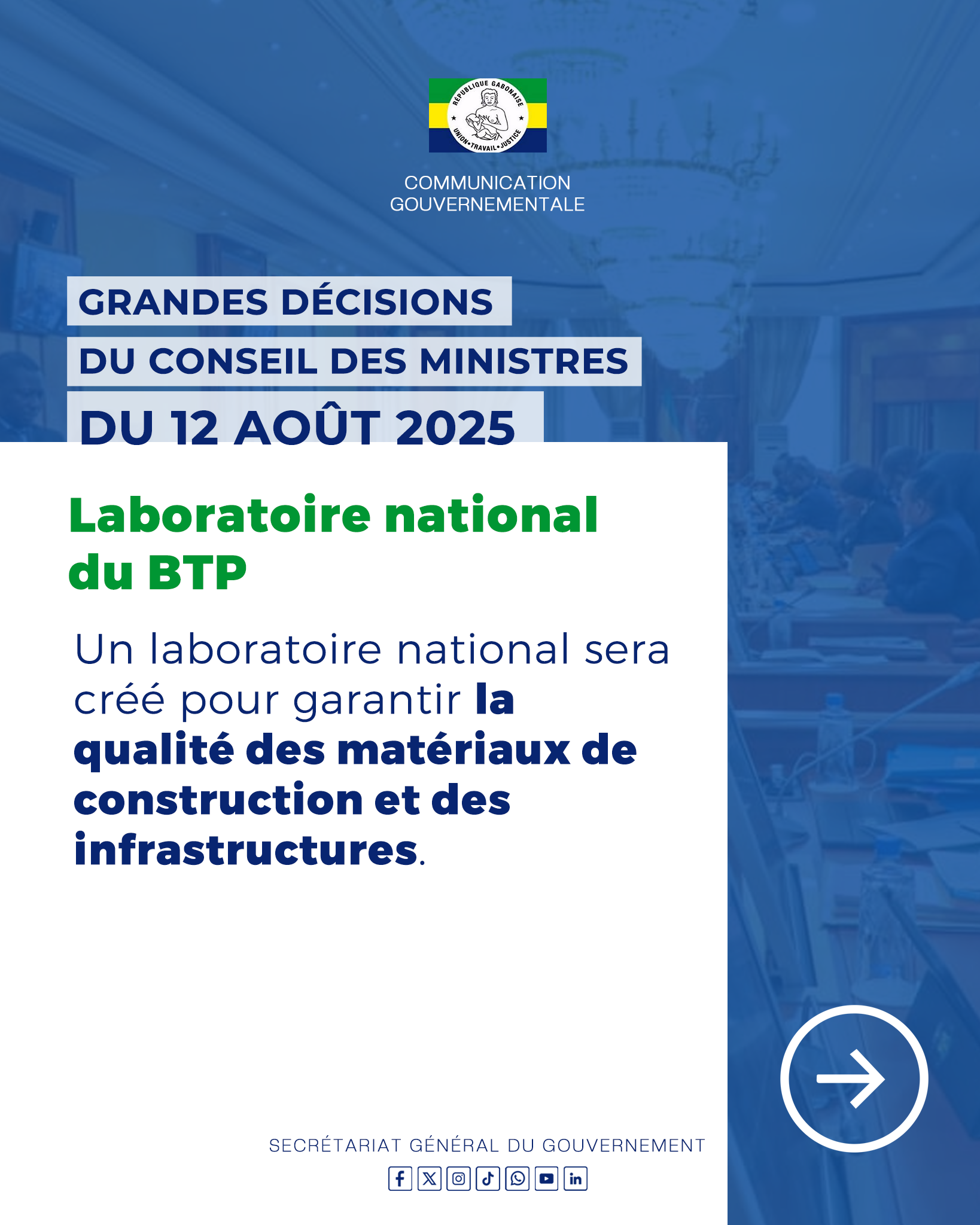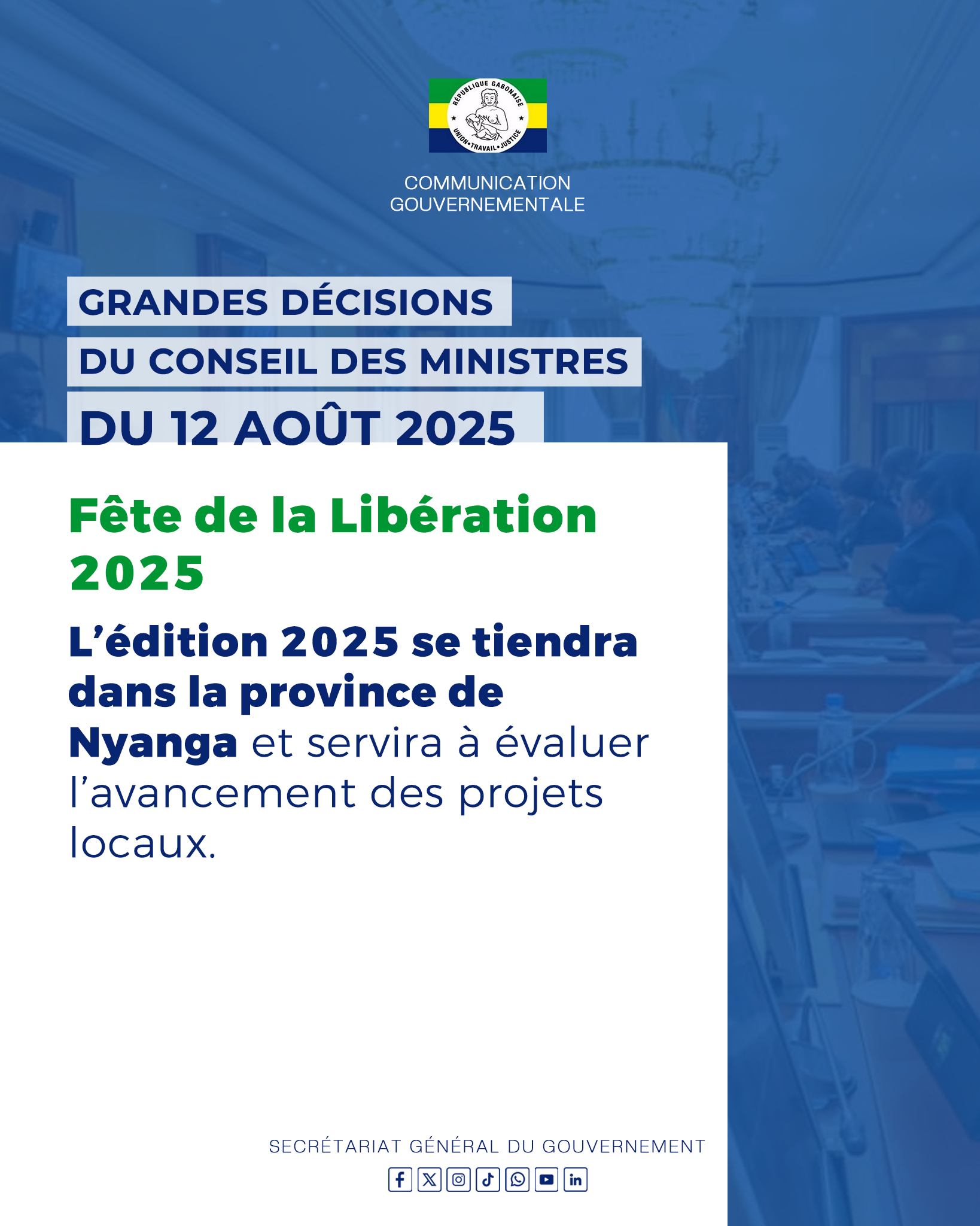 Retrouvez toutes les décisions importantes prises lors du Conseil des Ministres du mardi 12 août 2025.