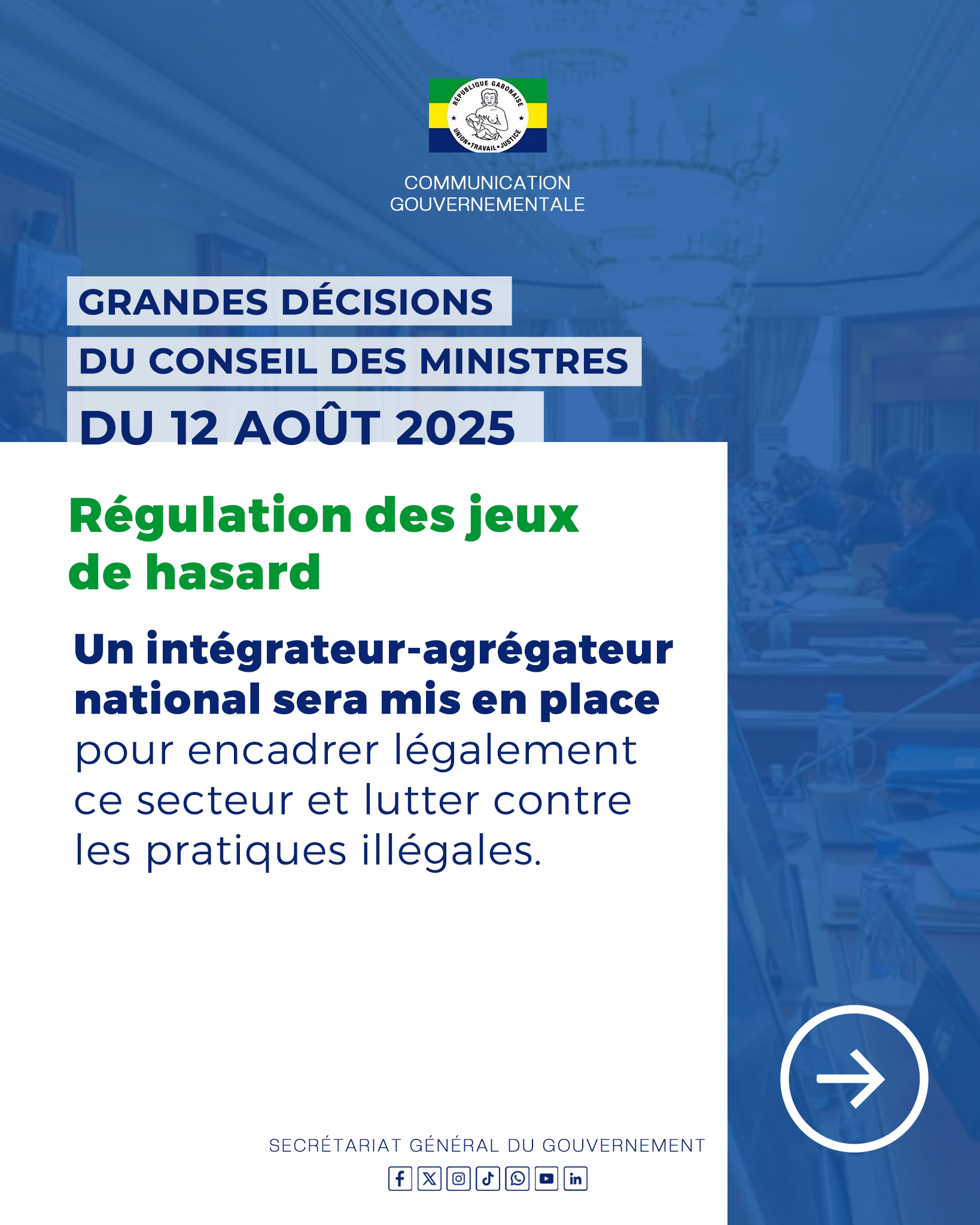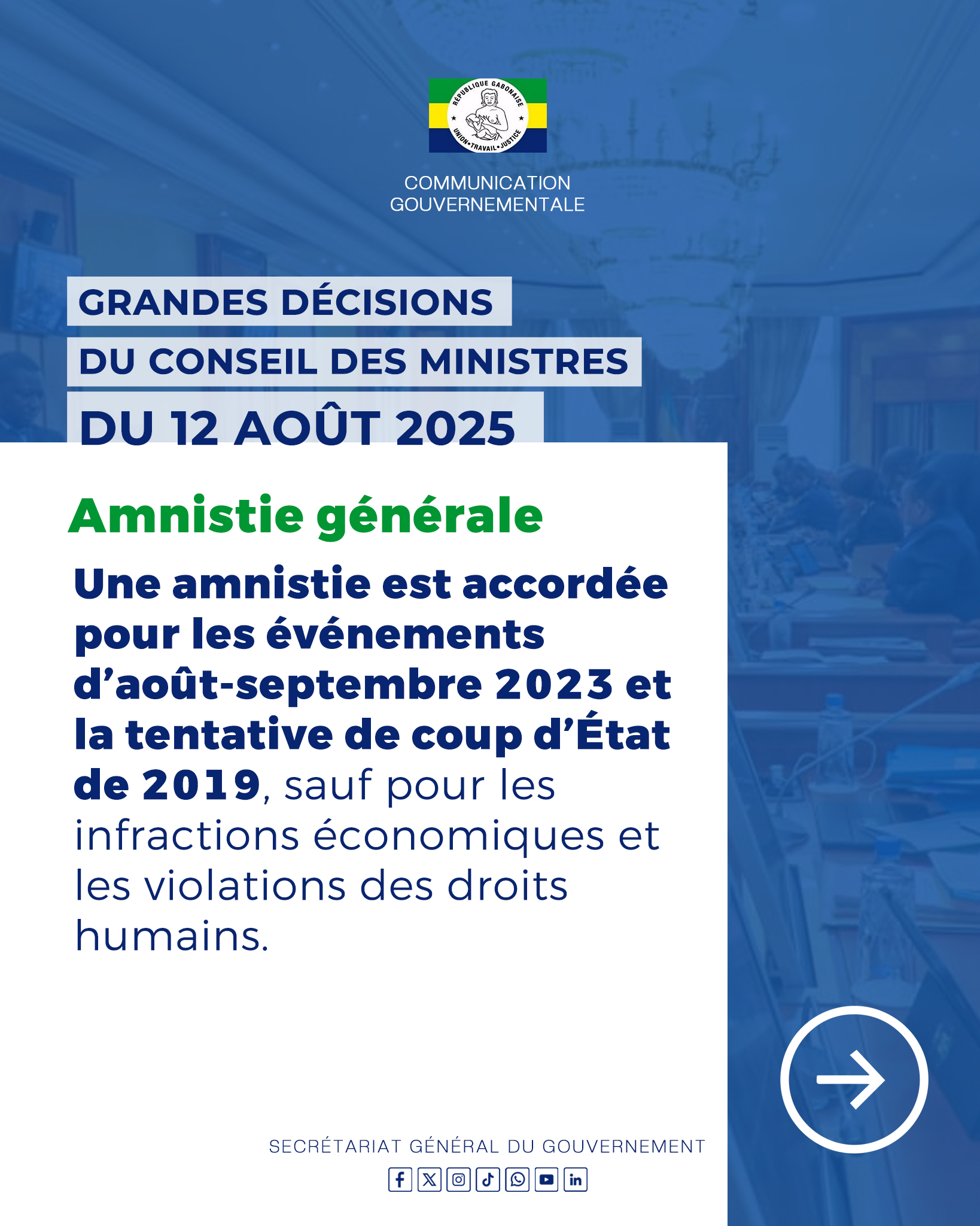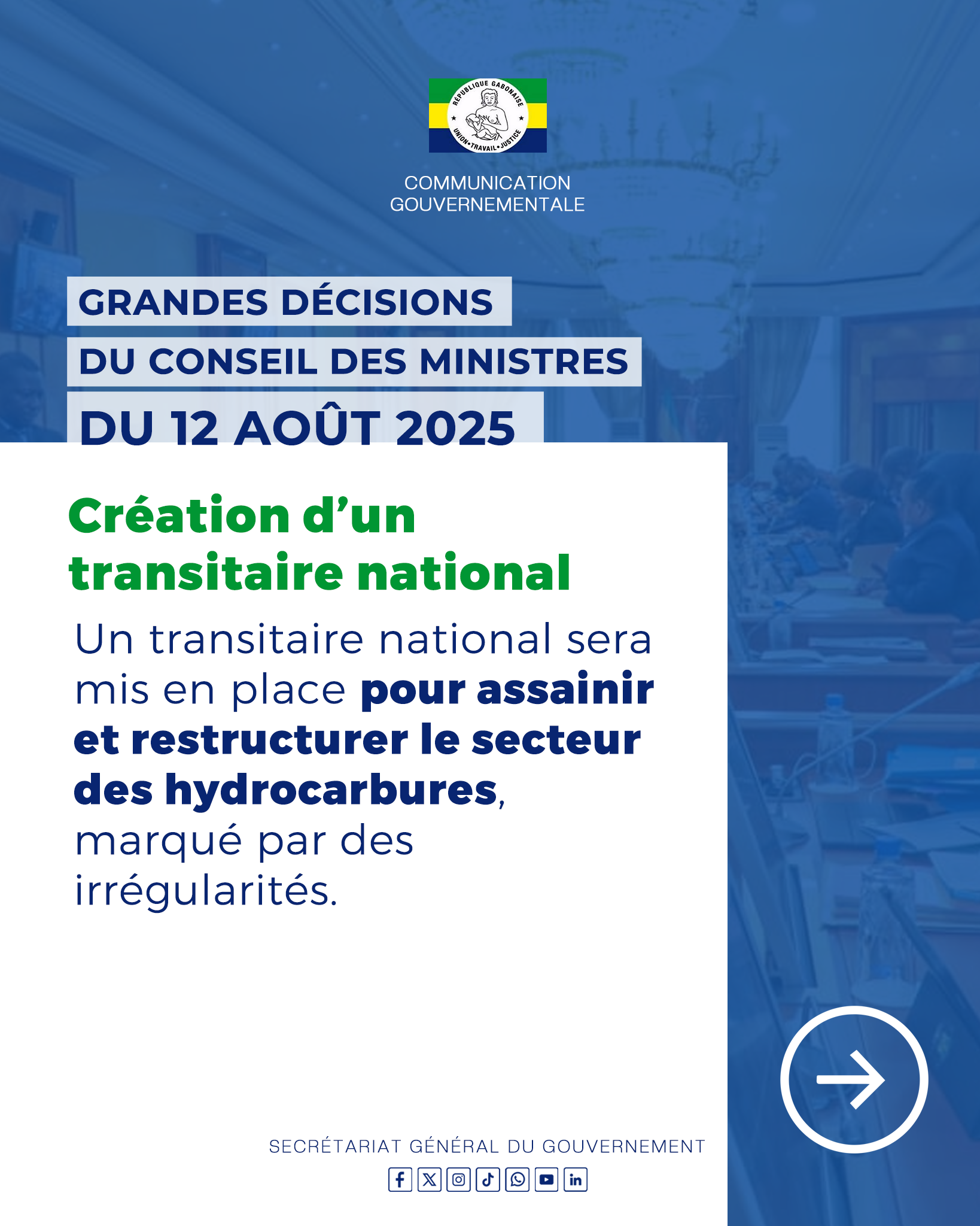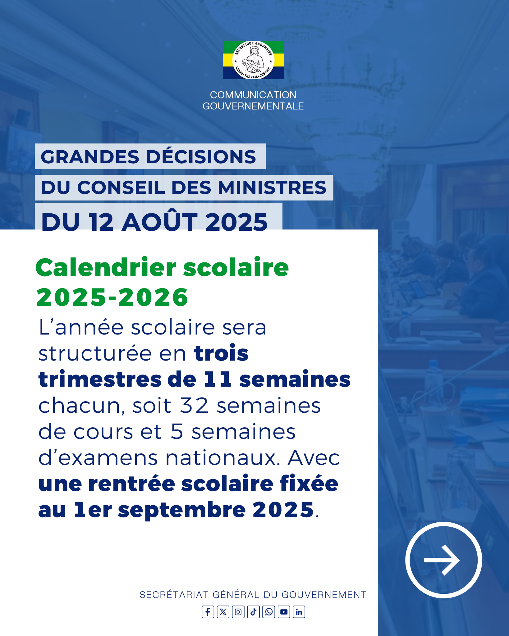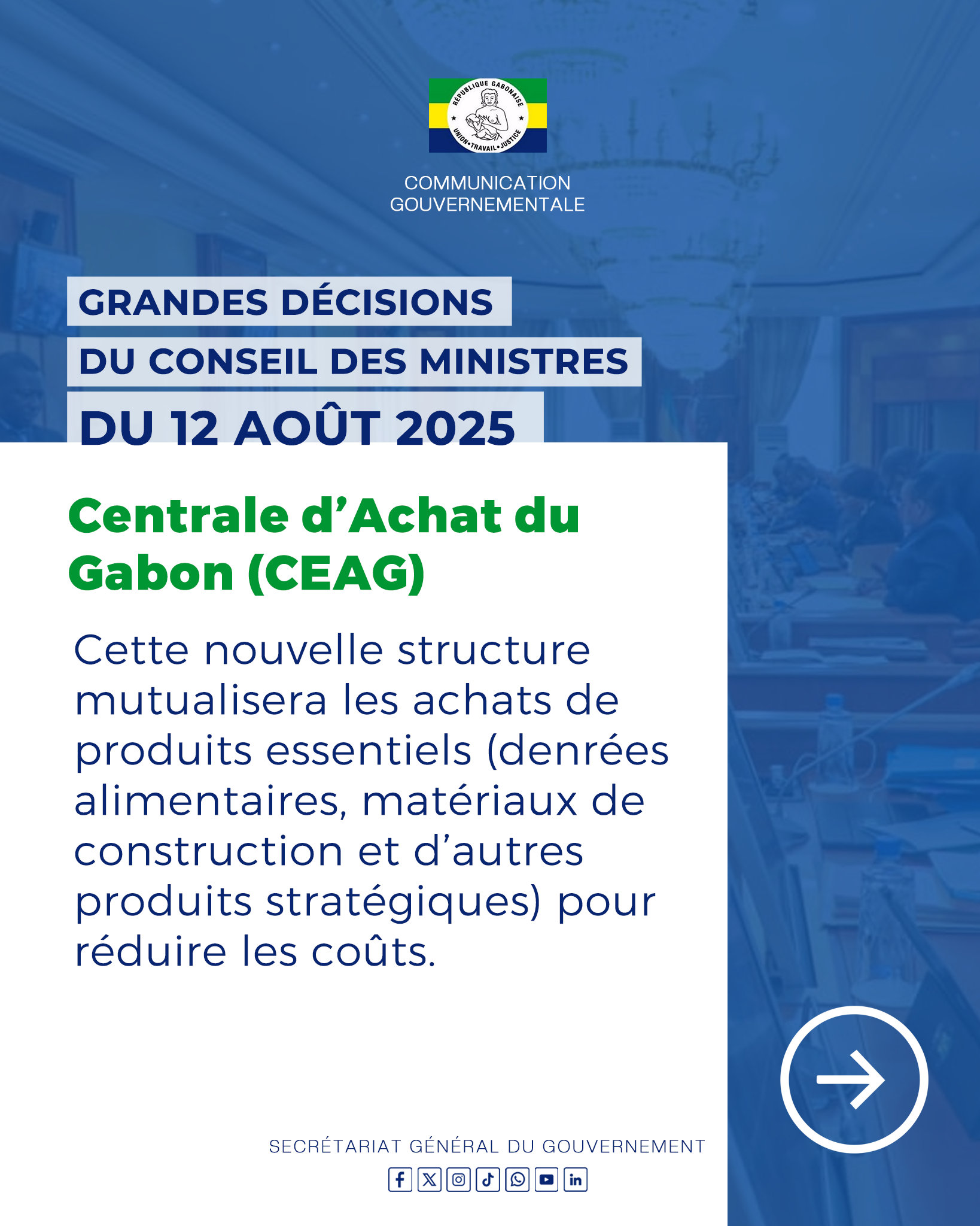 Retrouvez toutes les décisions importantes prises lors du Conseil des Ministres du mardi 12 août 2025.