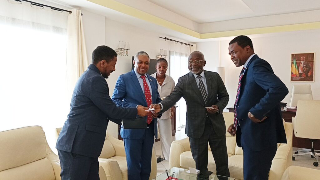 Le Ministre de l’Industrie et de la Transformation Locale, Me Lubin Ntoutoume – Officiel, a reçu, ce mercredi 17 septembre à son cabinet, Son Excellence 𝐌𝐞𝐤𝐮𝐫𝐢𝐚 𝐆𝐄𝐓𝐀𝐂𝐇𝐄𝐖 𝐖𝐎𝐑𝐊𝐔, nouvel Ambassadeur d’Éthiopie au Gabon.