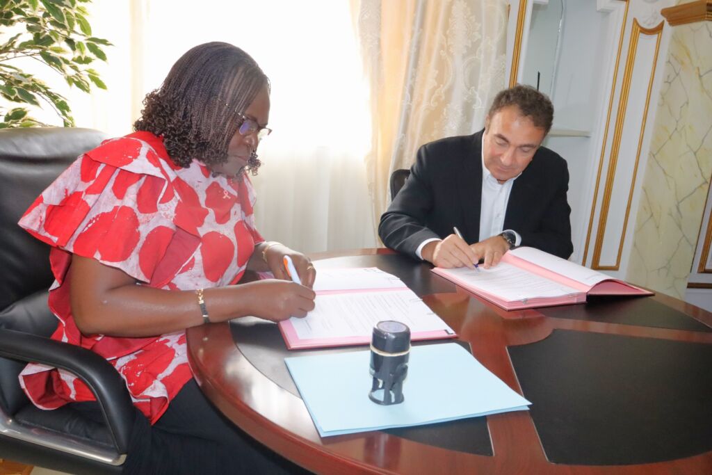Introduite par S.E Jean Bernard Avouma, Ambassadeur Extraordinaire et Plénipotentiaire du Gabon en Turquie, M. Hakan Kiran, Consul honoraire du Gabon en Turquie et Homme d’affaires, a été reçu en audience ce mardi, 7 octobre 2025, par Mme Odette Polo épse Pandzou, Ministre de l’Agriculture, de l’Elevage, et du Développement Rural. Cette audience avait pour but la signature du mémorandum d’entente entre la holding Hakan Kiran (que dirige le Consul et homme d’affaires) et le ministère d’Agriculture, de l’Elevage et du Développement Rural, en vue de produire des poulets de chair au Gabon et des aliments devant les nourrir.