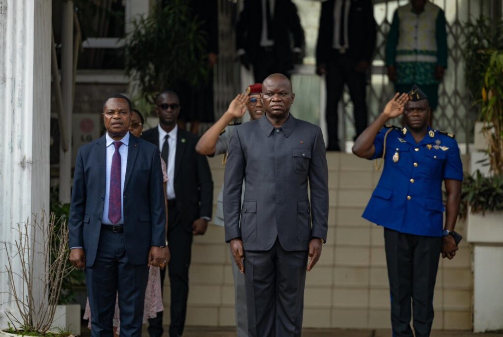 Libreville, le lundi 15 décembre 2025, le Président de la République ,Chef de l’État, Chef du Gouvernement, Son Excellence Brice Clotaire Oligui Nguema, a pris part à la levée des couleurs au Ministère de la Fonction Publique et du Renforcement des Capacités.
