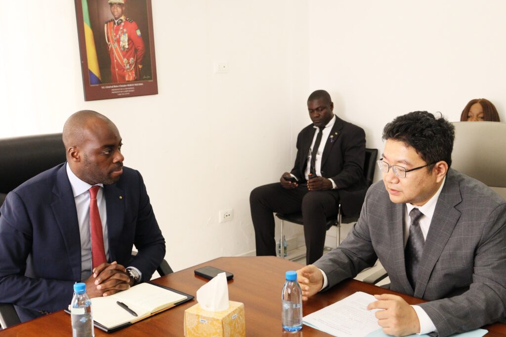 Ce mercredi 17/12/2025, Monsieur Mark-Alexandre DOUMBA, Ministre de l’Économie Numérique, de la Digitalisation et de l’Innovation, agissant en sa qualité de Ministre de l’Agriculture, de l’Élevage et du Développement Rural par intérim, a accordé une audience à une importante délégation chinoise conduite par Son Excellence ZHOU Ping, Ambassadeur de la République Populaire de Chine au Gabon.