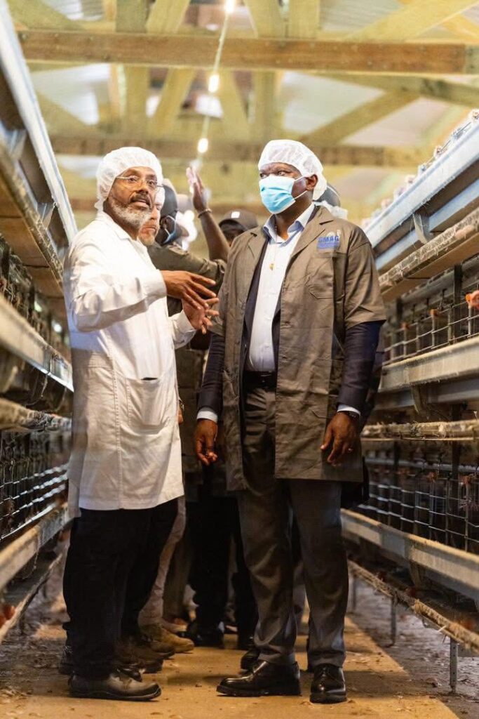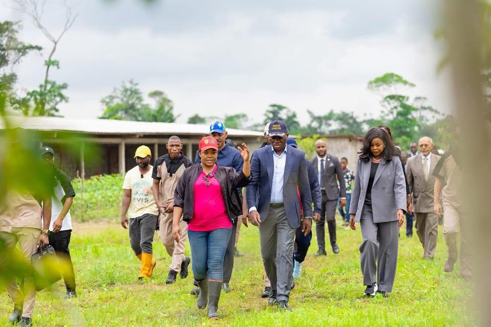 Aprรจs une premiรจre รฉtape ร la BTF Farming, situรฉe ร Malibรฉ II dans la commune dโAkanda, le Chef de lโรtat sโest ensuite rendu dans la zone de Kango pour visiter plusieurs exploitations avicoles, notamment :