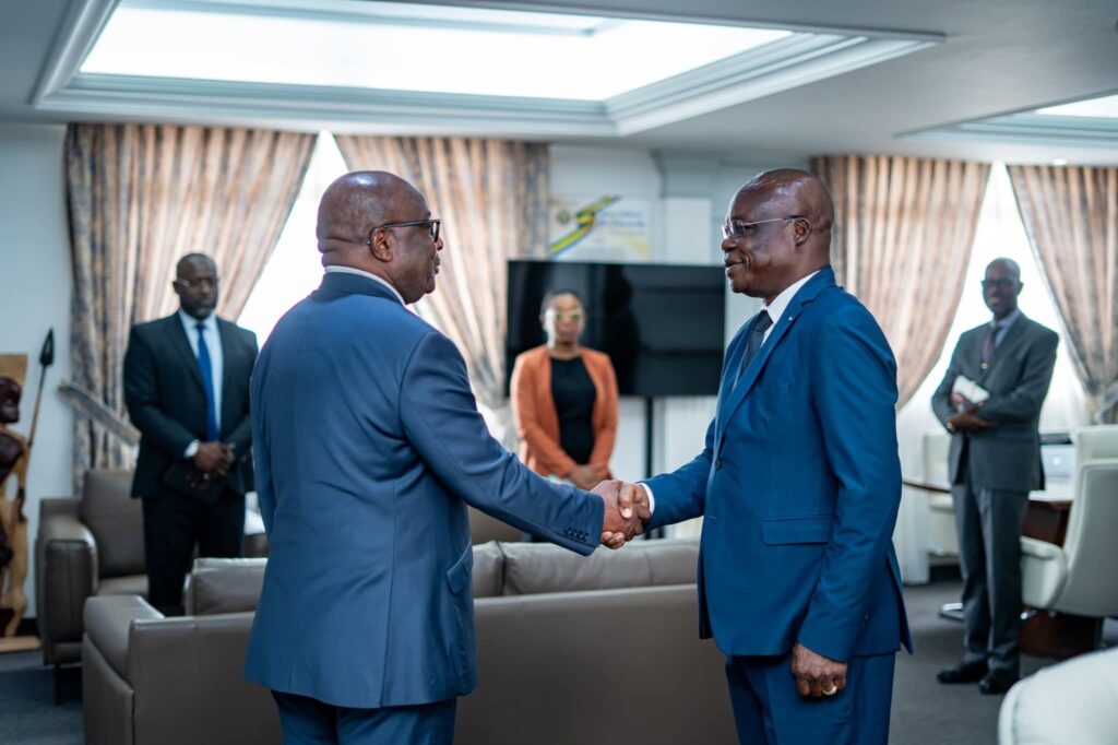 Libreville, le 23 février 2026 – Le lundi 23 février 2026, le ministre de l’Intérieur, de la Sécurité et de la Décentralisation, Adrien NGUEMA MBA, a reçu en audience une délégation de l’Organisation Internationale de la Francophonie (OIF), conduite par Son Excellence l’Ambassadeur Alphonse WAGUENA, dans le cadre des échanges portant sur le programme RECAP-OIF.