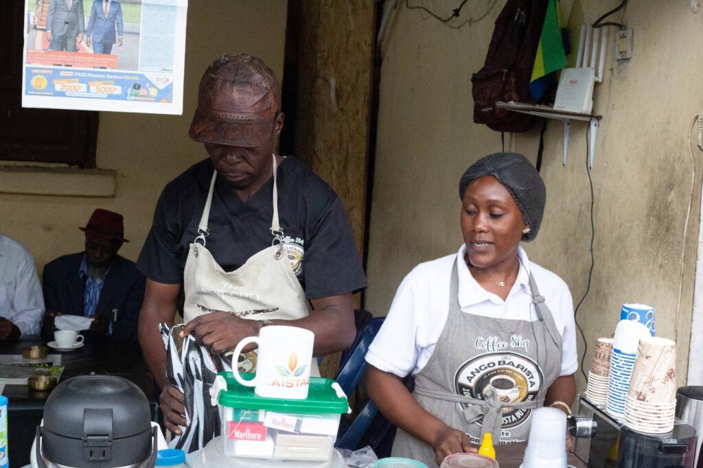 Cette visite de terrain visait à mettre en lumière une activité à fort potentiel économique, encore insuffisamment investie par les nationaux : la transformation et la distribution de proximité du café gabonais. Le jeune entrepreneur visité, bénéficiant d’un programme de formation en partenariat avec la CAISTAB, a su structurer son activité autour d’un concept de coffee shop.