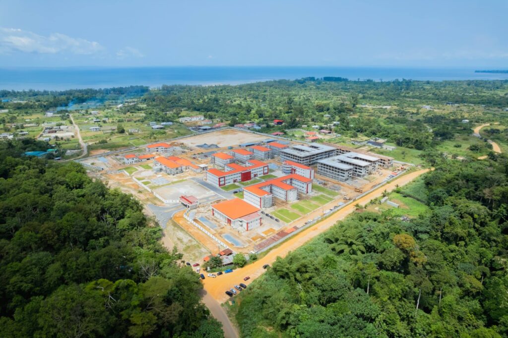 Située au Cap Esterias, l’USE a été conçue comme une université futuriste, visant à devenir un pôle d’excellence. Le projet prévoit des infrastructures innovantes et modernes, rigoureusement adaptées aux exigences de la formation, de la recherche et de la pédagogie du XXIᵉ siècle.