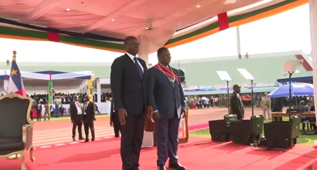 Organisée dans un stade de 20 000 places, cette cérémonie d’envergure a rassemblé plusieurs Chefs d’État et de Gouvernement ainsi que des délégations de haut niveau, illustrant ainsi l’importance de cet événement dans le renforcement des institutions et la consolidation de la stabilité politique en République centrafricaine.