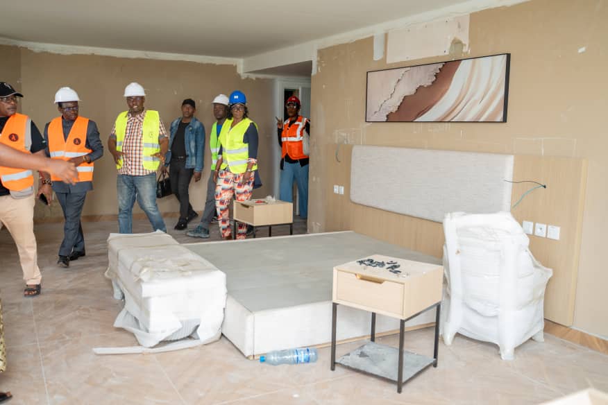 Dans la continuation de son séjour en terre altogovéenne, elle s’est rendue ce jour à Franceville pour visiter le chantier de réhabilitation de l’hôtel Léconi Palace. Cette visite de terrain a permis de constater une avancée significative des travaux.